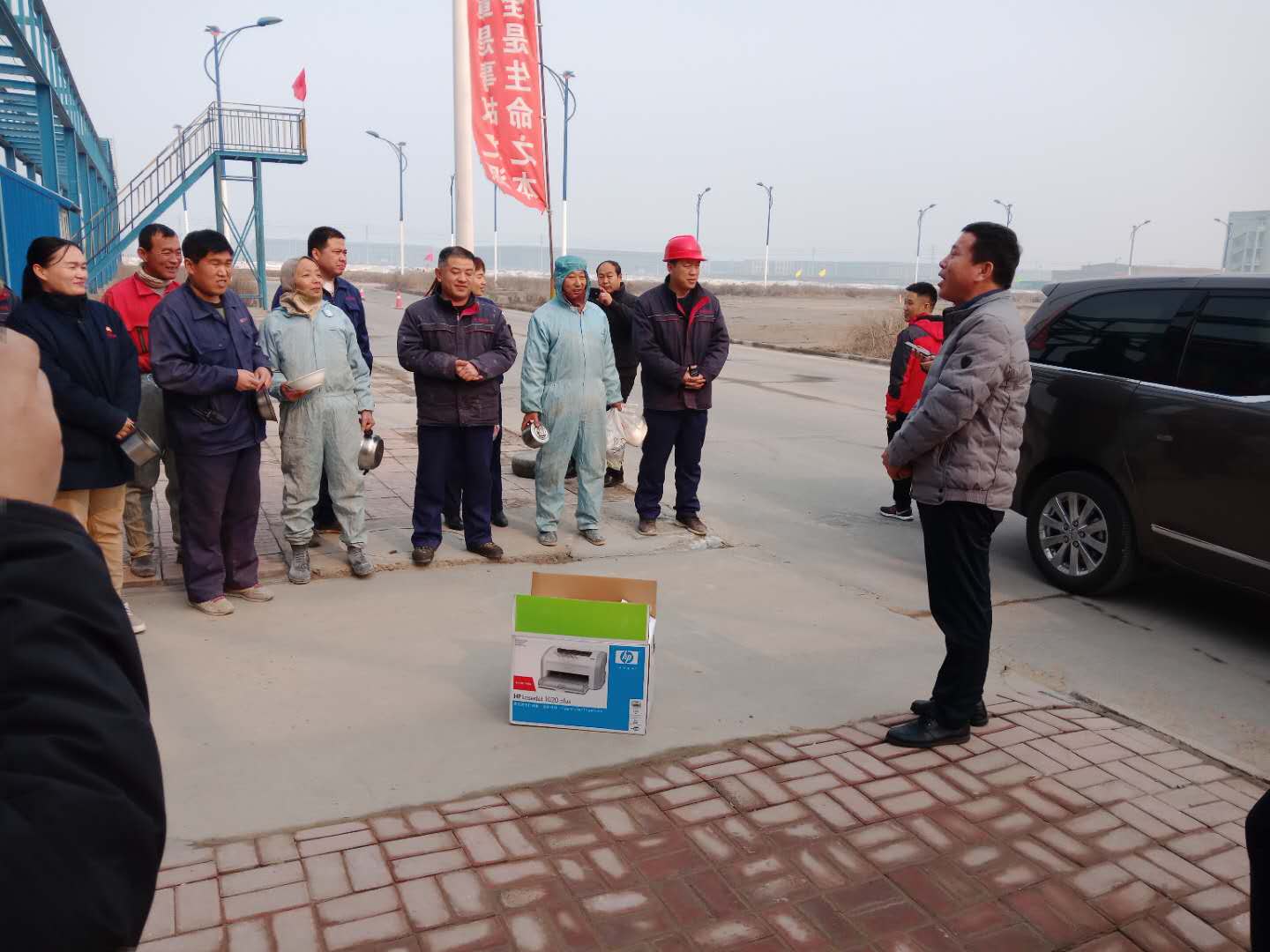 大年初一上午,集團工會韓紅喜主席一行驅車200余公里,從衡水趕到我公司位于滄州海興縣的佰康公司進行春節慰問,韓主席代表集團領導向春節期間堅守在生產一線的干部職工表示親切的慰問,要求相關人員一定要安排好春節期間的職工后勤服務工作,同時要抓好春節期間的安全生產,確保大家過一個平安祥和的春節!