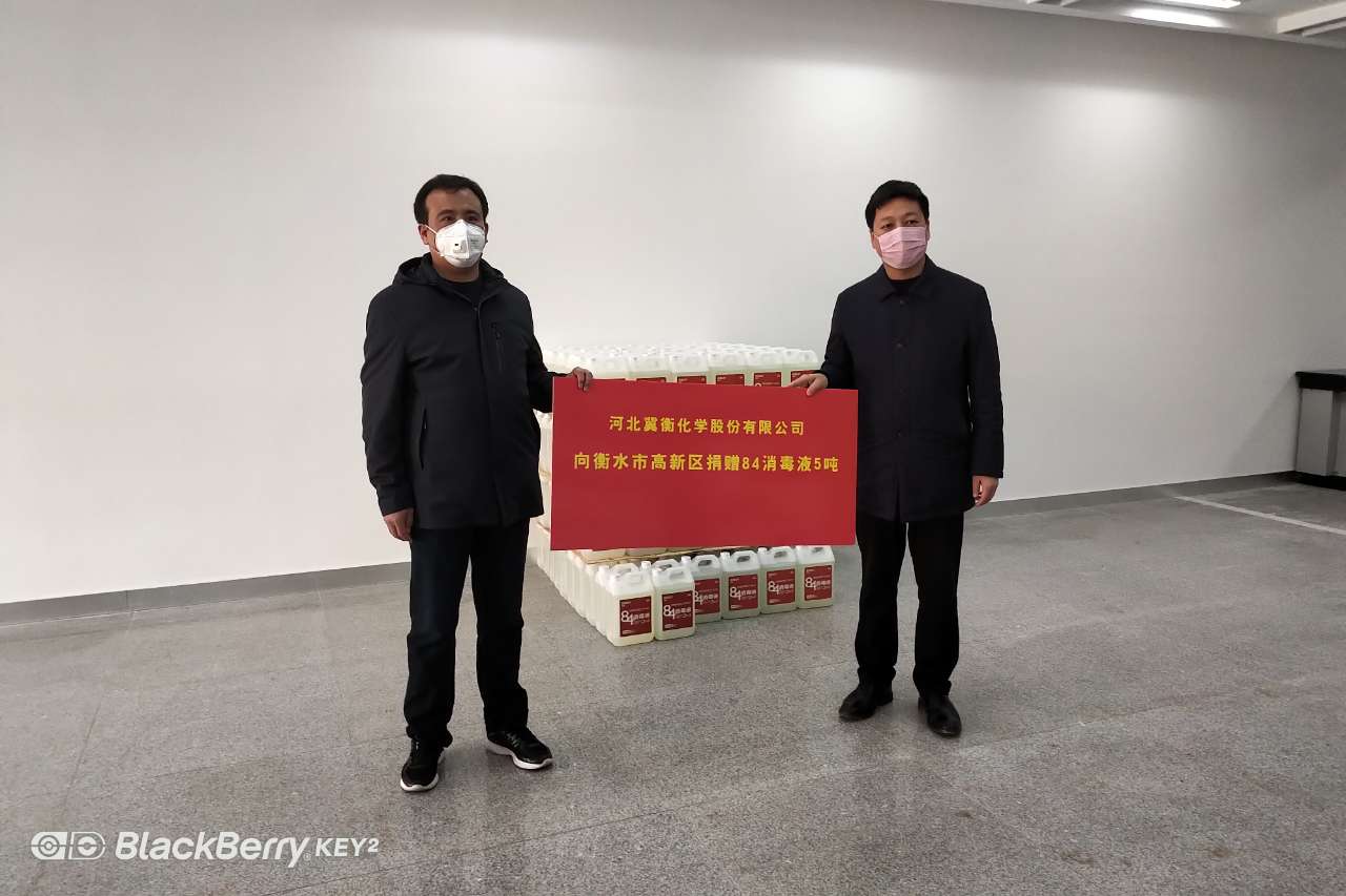 2月4日,我公司為衡水市疫情防控工作指揮部捐贈10噸84消毒液,衡水市新型冠狀病毒感染的肺炎疫情防控工作指揮部副指揮長、副市長崔海霞代表市疫情防控工作指揮部接受捐贈。