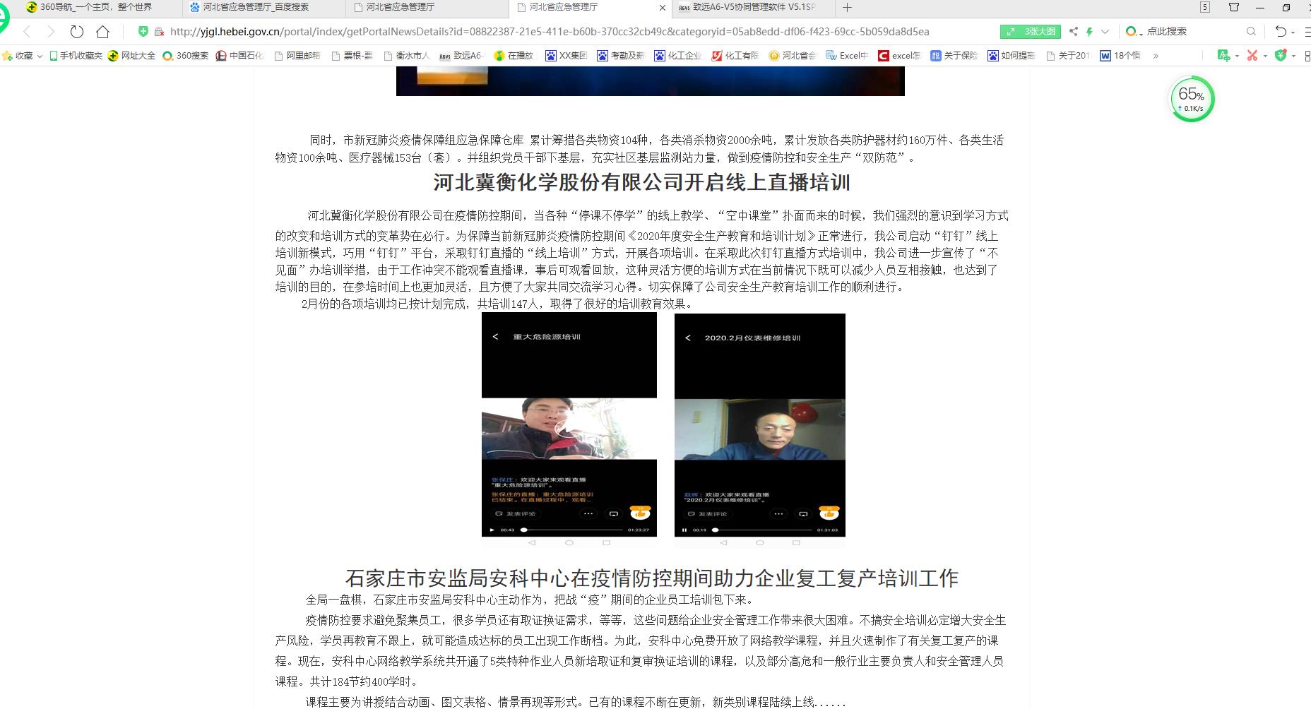 為了在嚴格落實疫情防控基礎上,全面落實公司2020年度職工安全培訓計劃,我公司通過“釘釘”管理平臺的“釘釘直播”方式,大力開展職工安全培訓,圓滿完成一季度各項培訓任務,員工安全操作技能和操作水平都有了明顯的提升,我公司職工安全培訓工作也被《河北省安全生產》等省級刊物報道。
