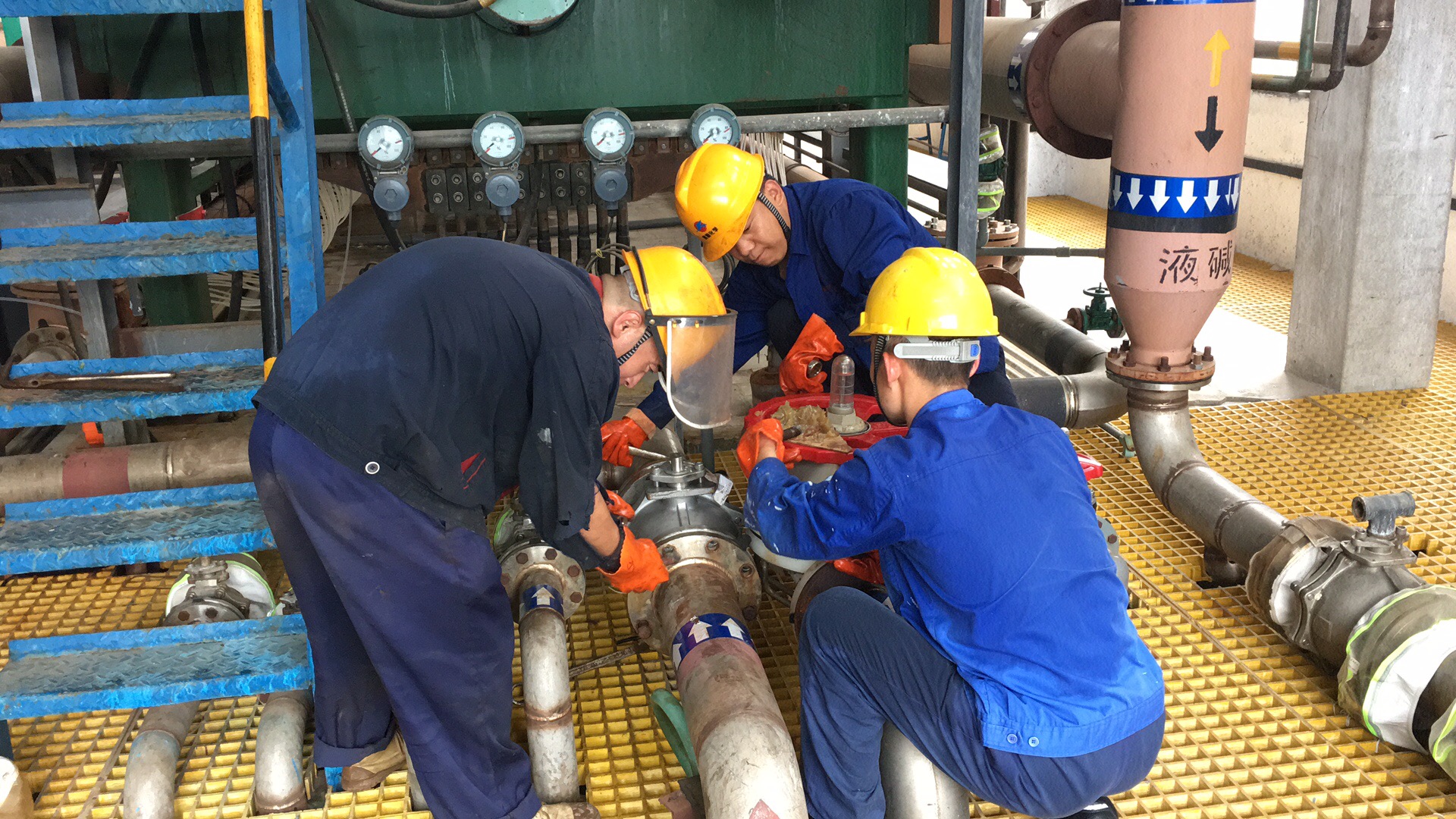 二車(chē)間職工為了設(shè)備能夠安全穩(wěn)定、高效運(yùn)行,崗位操作人員不畏高溫、酷暑,尤其是后工序人員,無(wú)論什么天氣,都要把自己包裹的“嚴(yán)嚴(yán)實(shí)實(shí)”,進(jìn)入裝置區(qū)工作半小時(shí),出來(lái)的時(shí)候靴子里就能倒出水來(lái),為了改善職工操作環(huán)境,公司大力開(kāi)展技術(shù)改造,通過(guò)物料風(fēng)送、二水二氯混料工藝改造,有效地改善了職工的操作環(huán)境。